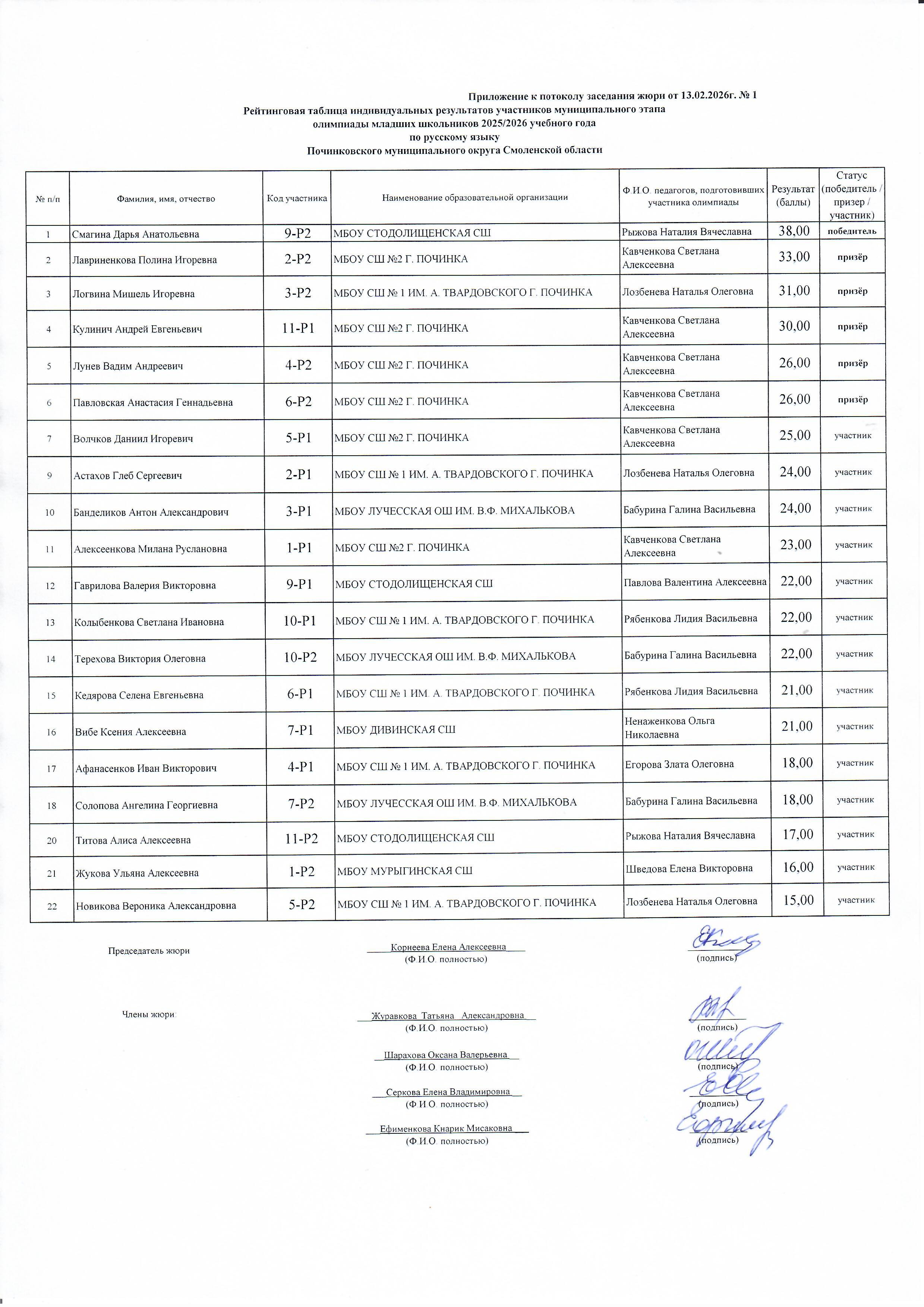 РЕЙТИНГ УЧАСТНИКОВ МУНИЦИПАЛЬНОГО ЭТАПА ОЛИМПИАДЫ МЛАДШИХ ШКОЛЬНИКОВ ПО ИТОГАМ ШКОЛЬНОГО ЭТАПА (РУССКИЙ ЯЗЫК 4 КЛАСС, МАТЕМАТИКА 4 КЛАСС)