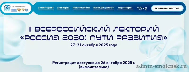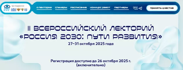 Регистрация на лектории осуществляется через официальный сайт мероприятия (лекторий-2030.рф) до 26 октября 2025 г. (включительно).