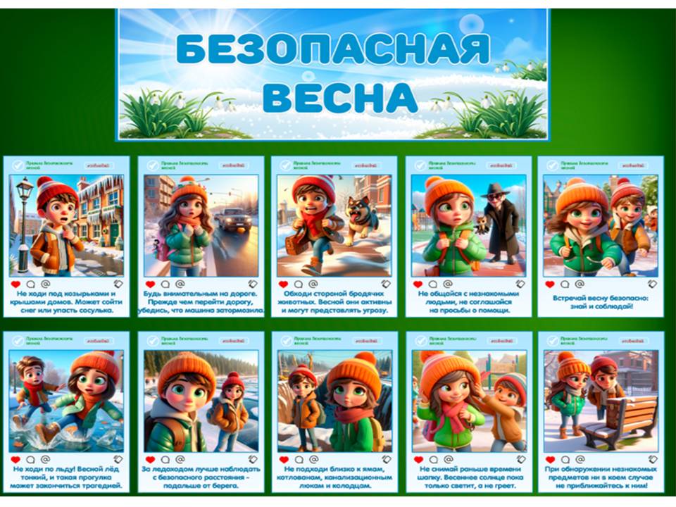 Важно помнить:Личный пример: Дети учатся, наблюдая за вами. Соблюдайте правила безопасности сами, и они будут следовать вашему примеру. Постоянный контроль: Даже если ваш ребенок уже достаточно взрослый, не оставляйте его без присмотра в потенциально опасных местах. Разъяснительная беседа: Регулярно говорите с детьми о правилах безопасности, объясняйте, почему те или иные действия опасны. Весна – прекрасное время для игр и открытий. Соблюдая эти простые правила, вы поможете своему ребенку насладиться всеми прелестями этого времени года, минимизировав риски. |